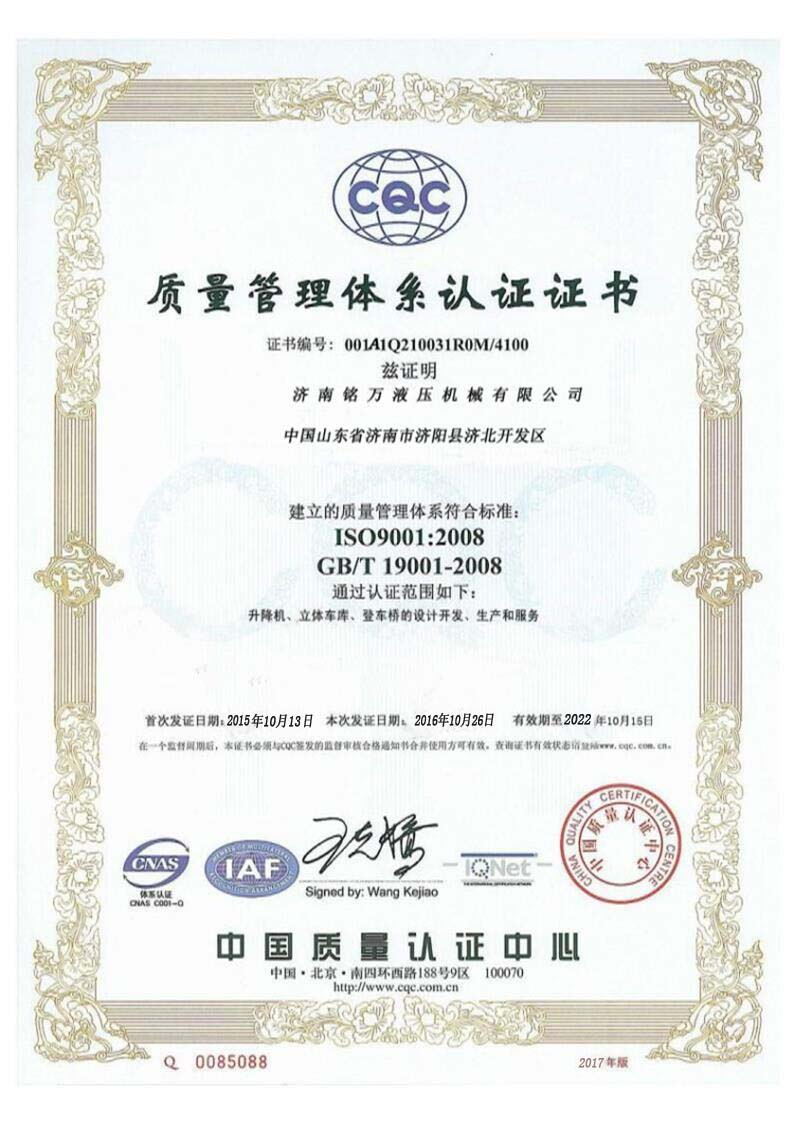 濟南銘萬液壓機械有限公司【原濟南機械廠】,是全國制造液壓升降機、升降平臺的廠家,產(chǎn)品有八大系列六十多個品種,規(guī)格齊全、質(zhì)量穩(wěn)定、安全可靠、方便快捷;產(chǎn)品銷往全國各地,深受用戶好評。升降機廠家技術(shù)力量雄厚,產(chǎn)品設(shè)計先進、工藝成熟、實驗檢測手段完善,“質(zhì)量第一,用戶至上”是我們的宗旨。 本公司采用先進的管理手段,嚴密的質(zhì)量監(jiān)控體系和良好的售后服務(wù)隊伍為我們的產(chǎn)品走向市場創(chuàng)造......